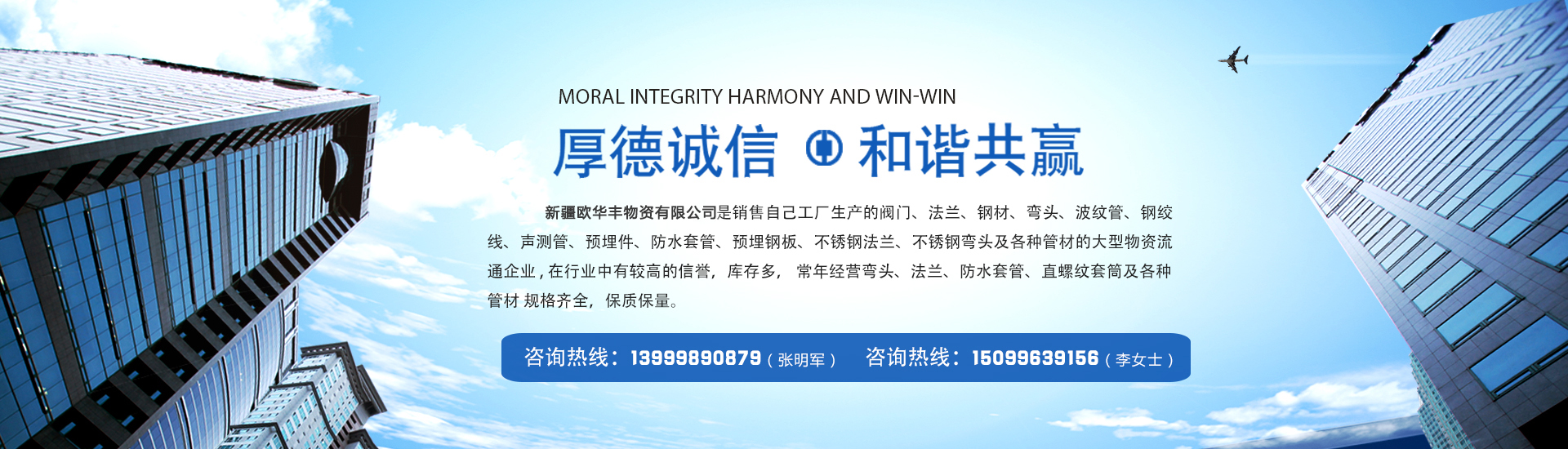 新疆歐華豐物資有限公司是銷售自己工廠生產(chǎn)的彎頭  法蘭  防水套管  及各種管材的大型物資流通企業(yè) , 在行業(yè)中有較高的信譽,庫存多,常年經(jīng)營閥門、法蘭、鋼材、彎頭、波紋管、鋼絞線、聲測管、預埋件、防水套管、預埋鋼板、不銹鋼法蘭、不銹鋼彎頭及各種管材 規(guī)格齊全,保質(zhì)保量。 公司一貫以: 服務上乘、質(zhì)量優(yōu)質(zhì)、價格合理、客戶至上、服務周到、讓利客戶、薄利多銷為原則,誠實守...